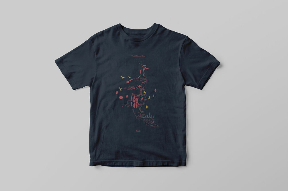 Caoilfhionn Rose Truly denim blue t-shirt, with two colour-print album-inspired artwork